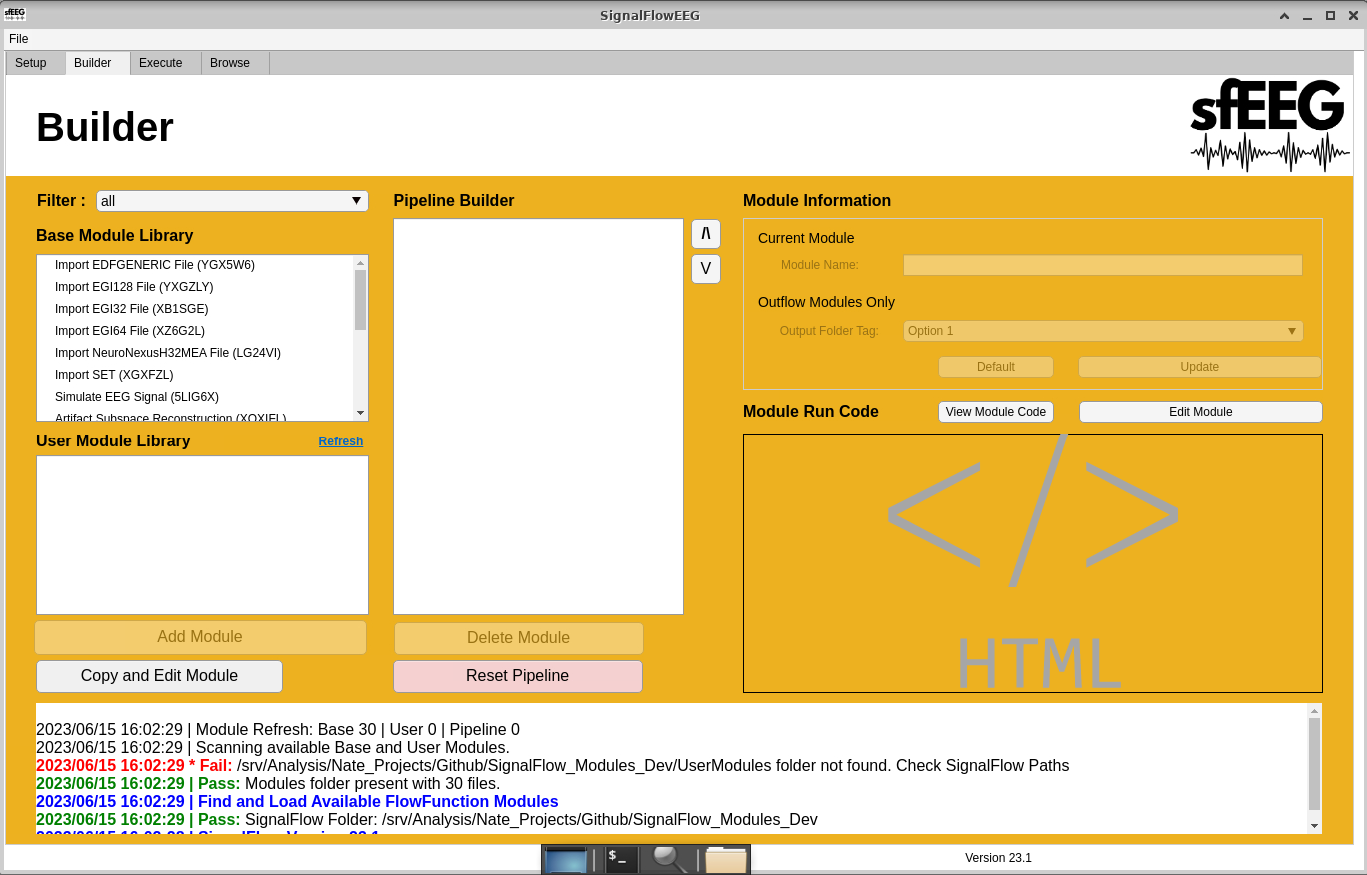 The Builder Tab is where you can build your pipeline. You can add, delete, reorder, and edit modules. You can also filter modules to make it easier to find the module you are looking for.